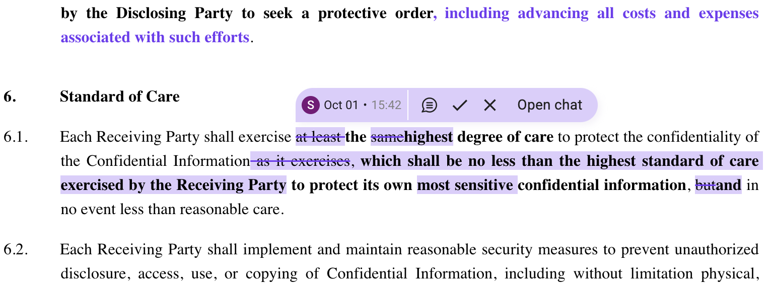 Whether you're pushing back on terms or tightening up clauses, suggestions come tailored to your context.